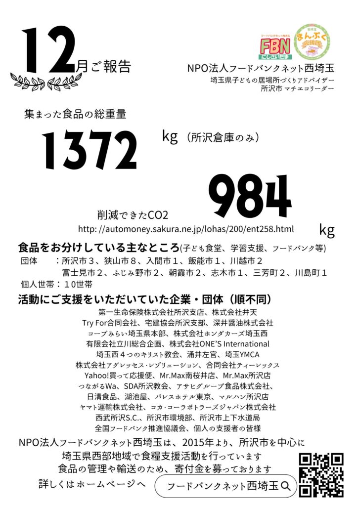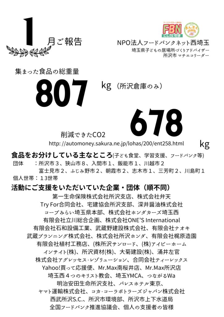 埼玉県所沢市を中心に、西部地域を対象エリアとして活動しているフードバンク団体です。